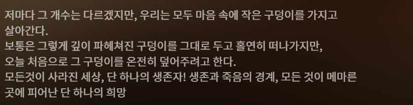 바이러스로 황폐해진 미래사회, 영웅은 다양한 사건과 슬픔을 극복해 나가면서 묵묵히 살아나가는데...