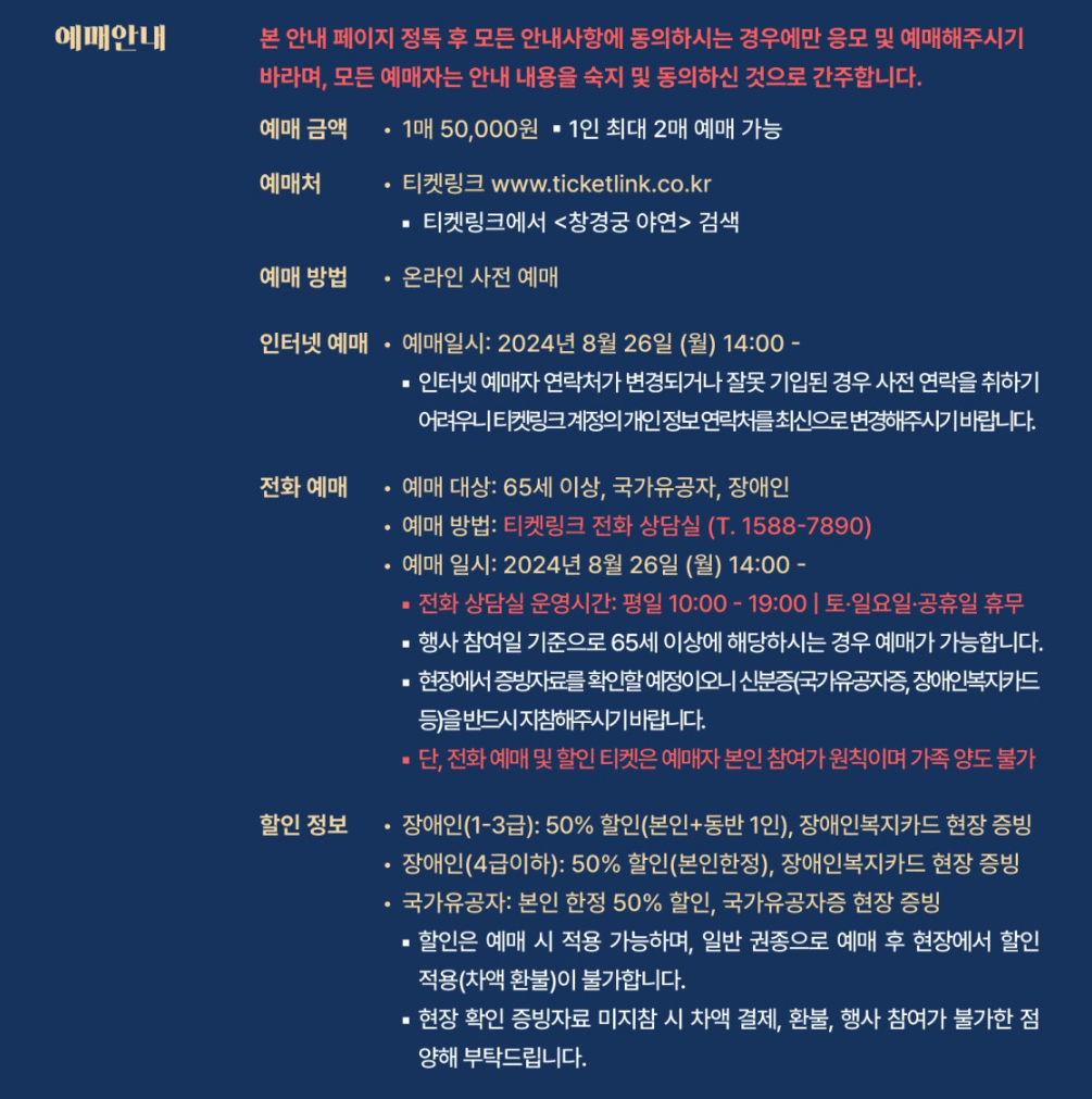 - 예매기간: 2024.8.26(월) 14:00~2024.9.17(수)