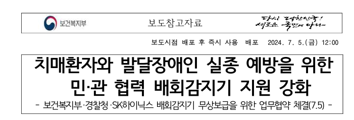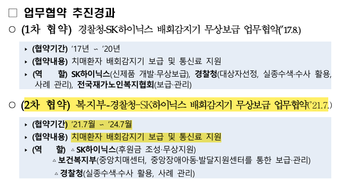 - 지원내용: 배회감지기 보급 및 2년간의 통신비 무상 지원
