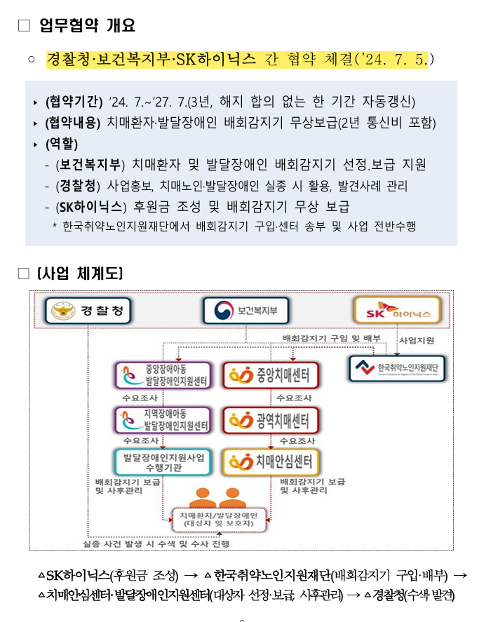 배회감지기 보급 사업 협약 내용
