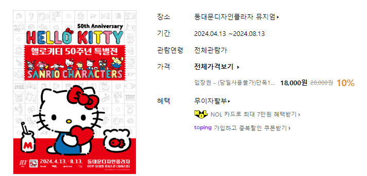 헬로키티 50주년 특별전 입장료