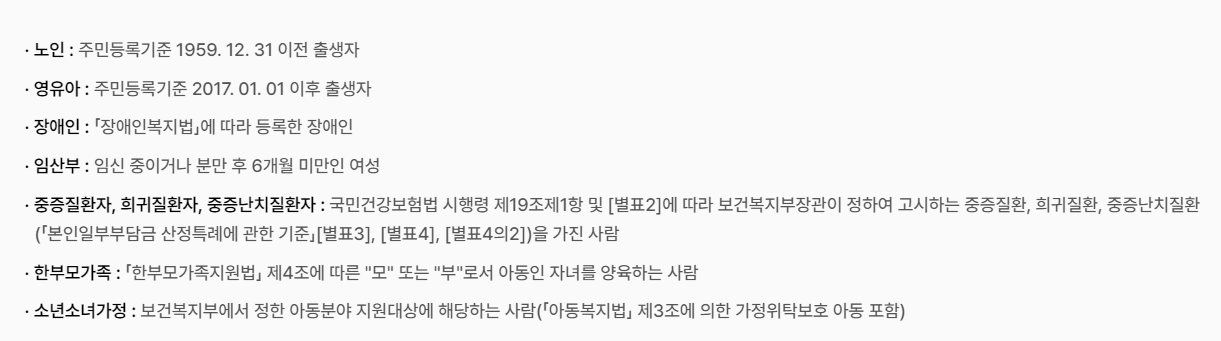 ※ 지원 제외 대상: 세대원 모두가 보장시설 수급자