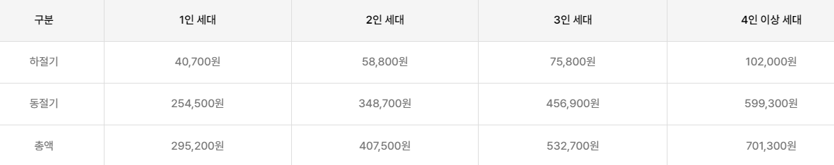 에너지바우처 금액은 세대원 수를 고려하여 세대당 금액을 차등 지급합니다.(주민 등록표 등본상 세대원)