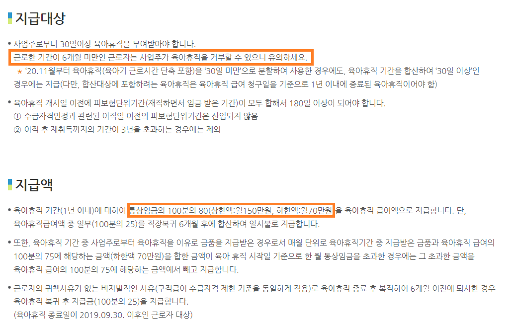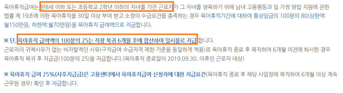 | 7개월 이후 | 일반 육아휴직급여 적용 |