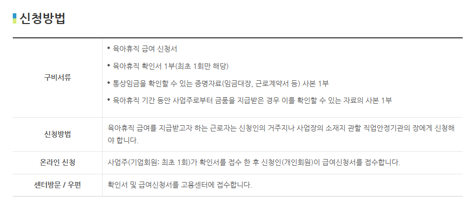 육아휴직 급여 신청은 온라인: 고용보험 홈페이지, 모바일 앱에서 가능, 오프라인: 고용센터 방문하여 신청할 수 있습니다. 직접 방문하실 경우에는 육아급여 신청서를 작성하여 제출해야 합니다.