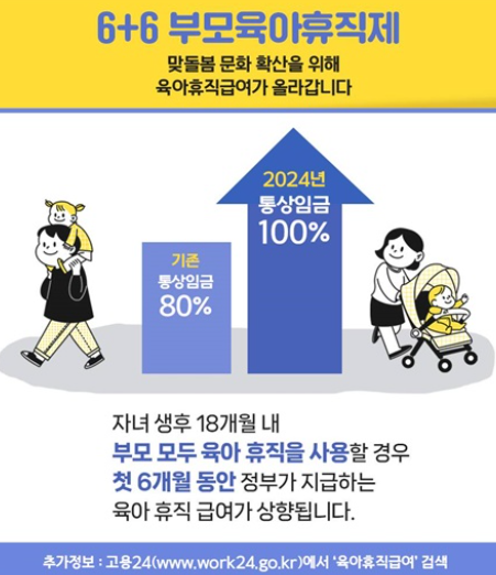 오늘은 2024년부터 시작되는 6+6 육아휴직 급여와 함께 전체 내용에 대해 알아보겠습니다.